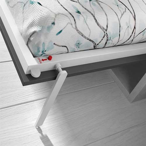 – Pies metálicos en color blanco, aluminio o pizarra (opción colores unicolor en artículos especificados).
