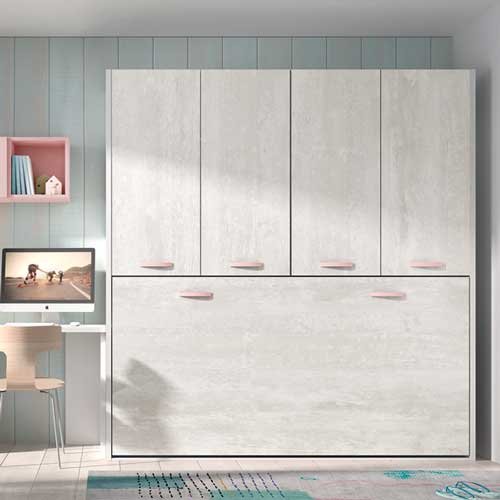 Composición 044, cama horizontal con armario incorporado parte superior con puertas abatibles.
