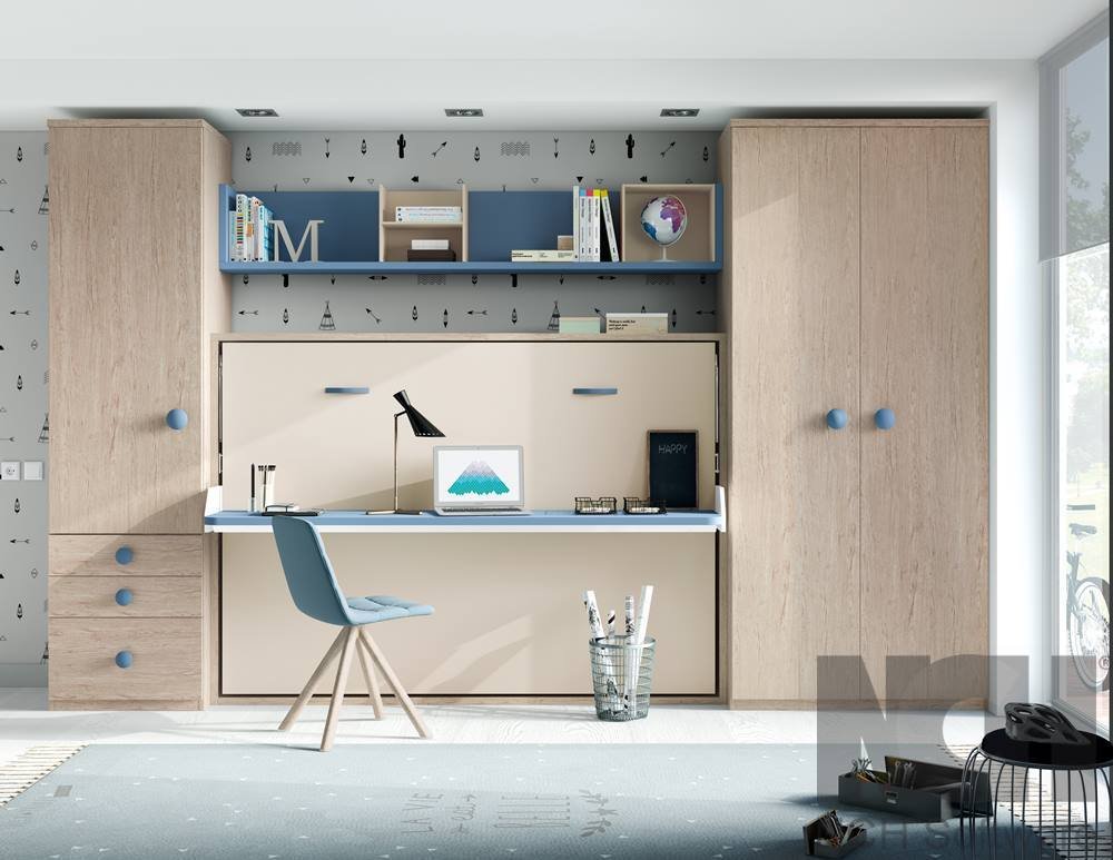 Cama abatible horizontal sencilla y ligera, opcional armarios y estanterías laterales.
