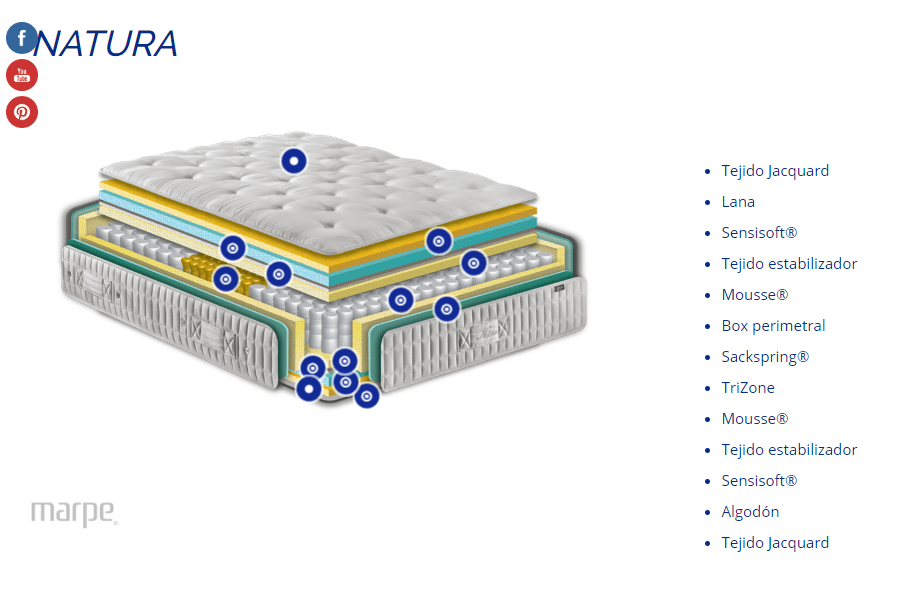 Fibras naturales bajo las capas de tejido que proporcionan un descanso suave y natural.