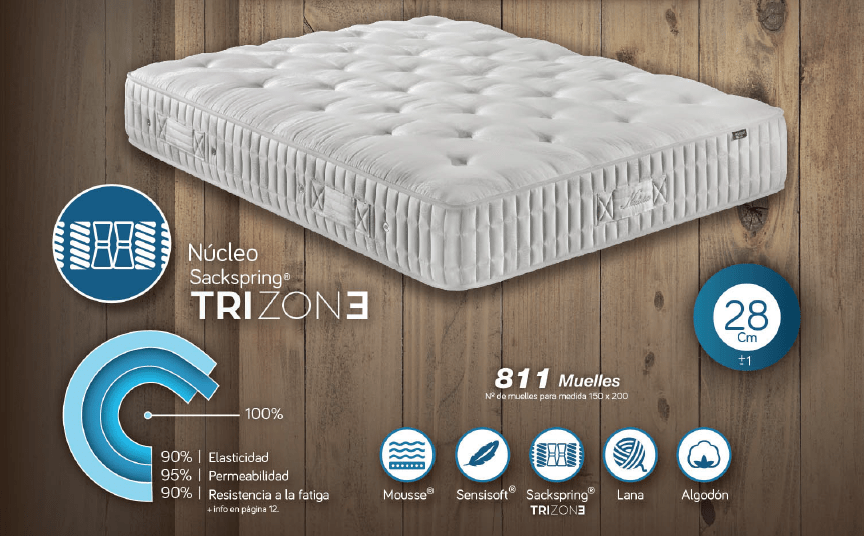 Con núcleo de muelle ensacado Sackspring sistema trizone para lograr un confort completo.