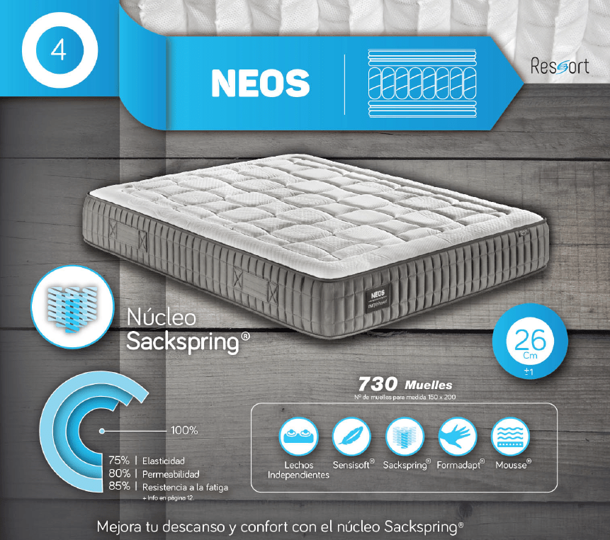 Nuevo concepto de descanso que combina la sofisticación de los muelles ensacados con las excelentes prestaciones de los mejores materiales. A diferencia del muelle convencional, el ensacado es un muelle individual contenido en su propio saco de tejido especial. Por ello los muelles ensacados proporcionan al colchón una gran sensación de adaptabilidad y transpiración única